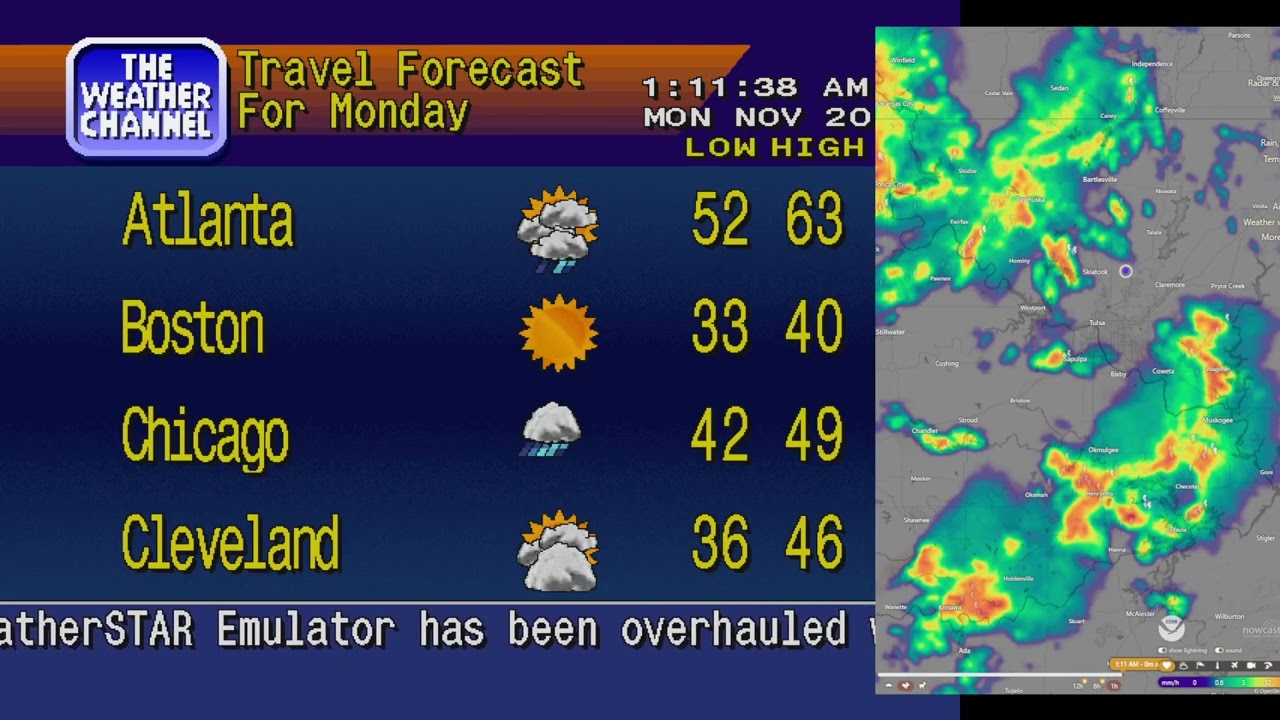 November 20, 2023, from 12:58am - 1:59am | Emulated WeatherSTAR - Tulsa, OK